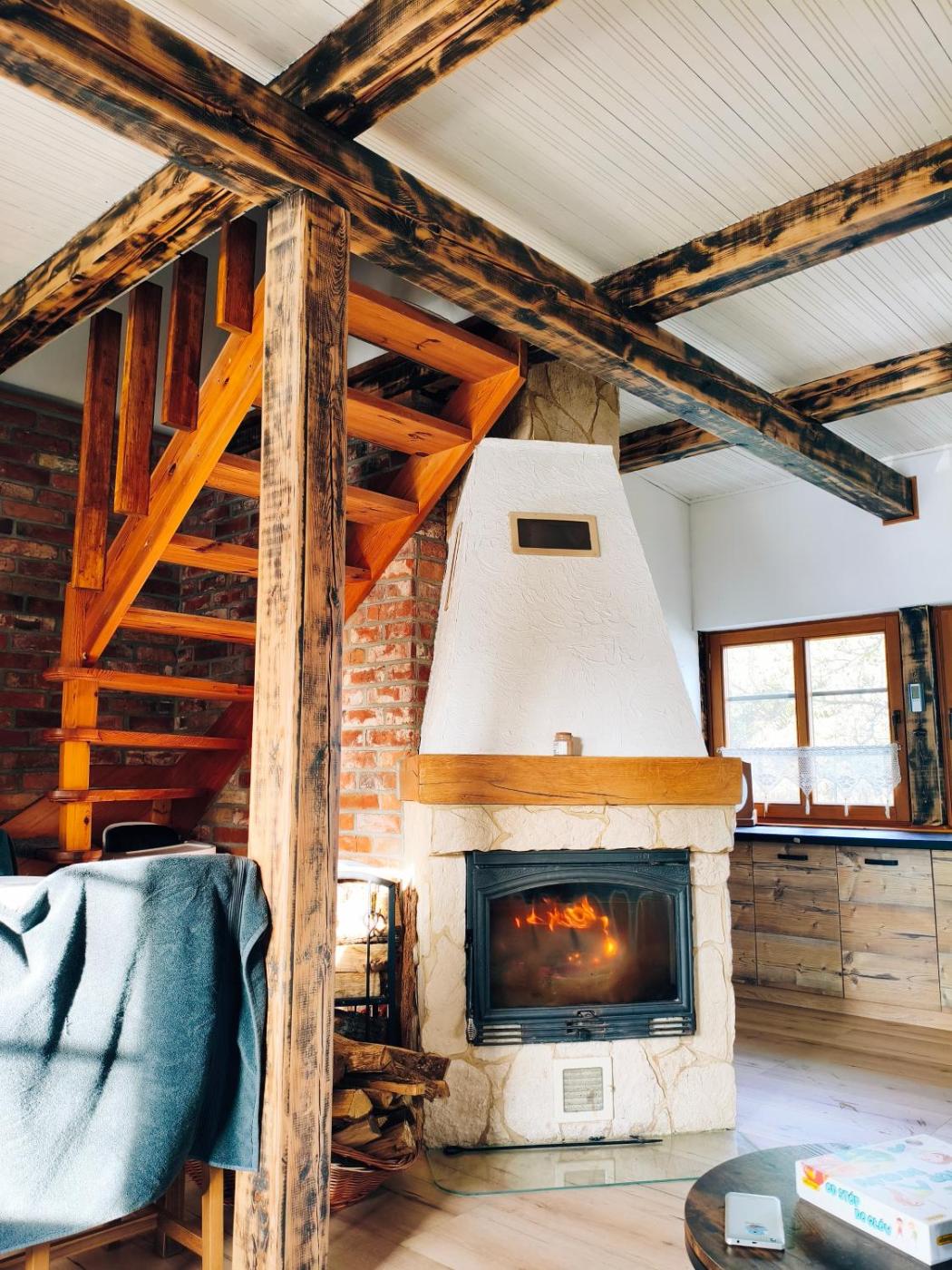 Dom z 2 sypialniami. This holiday homes special feature is the fireplace. In the well-equipped kitchen, guests will find a stovetop, a refrigerator, kitchenware and a microwave. Boasting a terrace with garden views, this holiday home also offers a washing machine and a flat-screen TV. The unit has 4 beds. Dom wakacyjny - 6 osobowy. Powierzchnia pokoju ok.: 70 mkw.